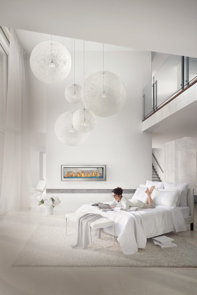 A well-placed contemporary fireplace can become the centerpiece of a room. If you have one, you won’t need too many decorations because it’s enough of an accent to an otherwise bare wall — just like a piece of art.