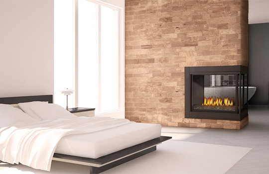 With its clean face design, the gas fireplace efficiently heats large areas while keeping the fire as the main attraction. There are various options for firebox styles and an electronic ignition with a backup battery. If you want to enjoy the look and feel of a fireplace no matter where you’re sitting, this is a unique option.
